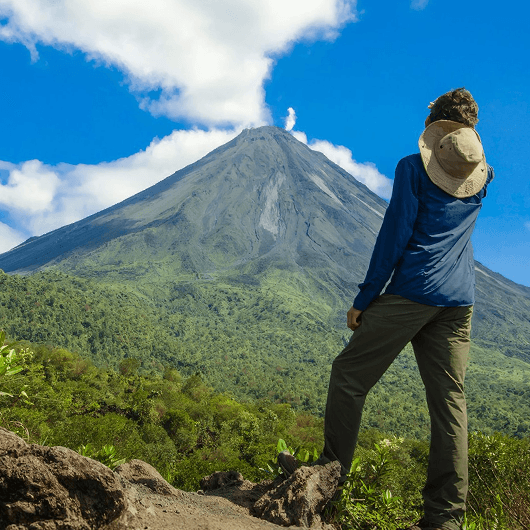 Explore lava trails and rainforest at the base of Arenal Volcano.